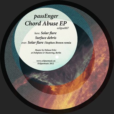 Following his recent collaborations with Ai Records, Electronique.it, and Icon of Desire, passEnger finally comes back to Eclipsemusic to release a new 12" vinyl record, titled 'Chord Abuse EP'. The release takes off with "Solar Flare", one of passEnger's most airy, housey and positive works till now, with its melodic sequence and uplifting atmosphere. On the same side of the 12", "Surface Debris" de-construct the classic techno elements to build an abstract, moody, hyper-cynetic slice of futuristic techno. On side B "Solar Flare" gets then a special remix treatment by Stephen Brown, one ofthe most personal and notable European Techno producers: the result is a tight, swinging rework of tiny slices of the original, turning the track into a classic techno builder..