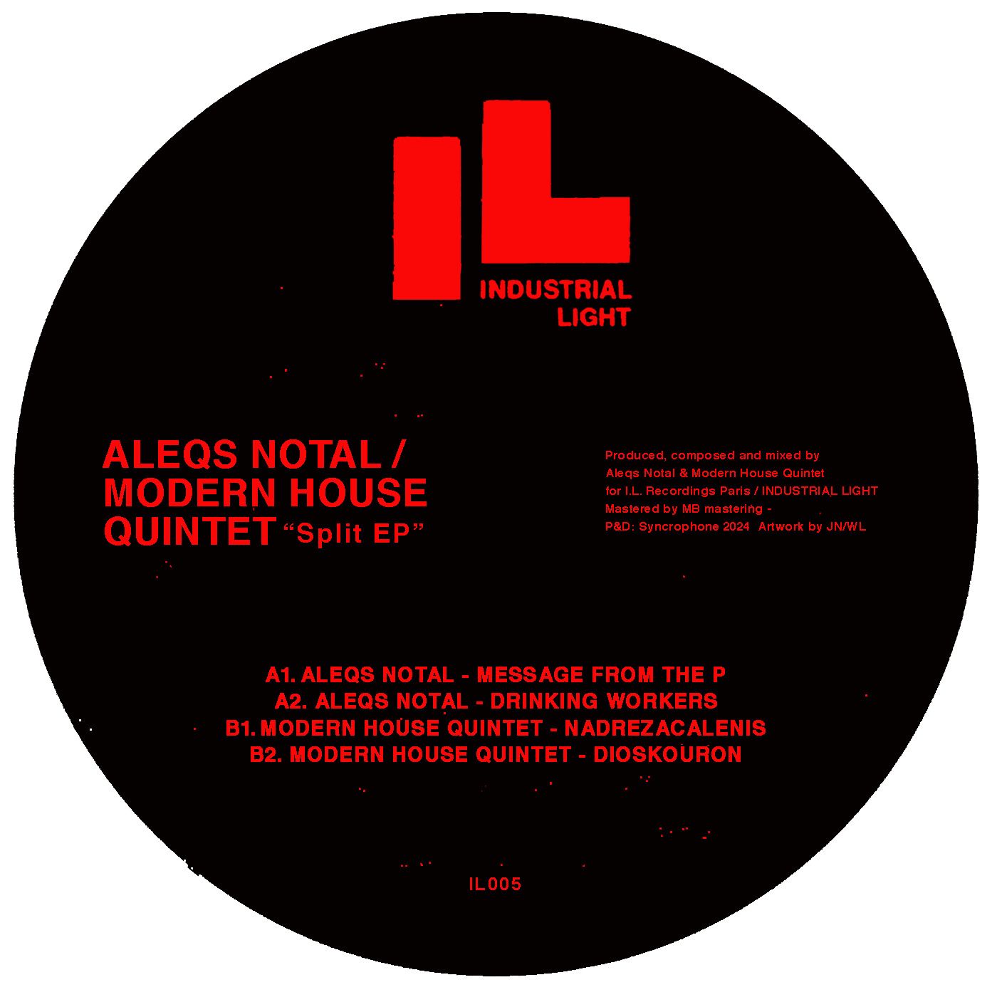 Syncrophone presents the very first vinyl release from Aleqs Notal’s label : Industrial Light. This premiere sees Notal partnering up with long time friend and fellow producer Modern House Quintet. Throughout four tracks – two from each musician – this release dives into several sub-genres of electronic music and provides four compelling songs.