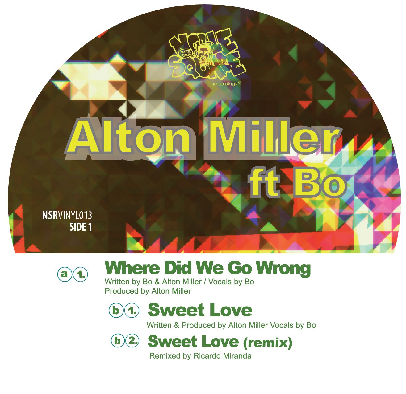 Detroit's ALTON MILLER (KDJ, SOUND SIGNATURE) returns to NOBLE SQUARE with "WHERE DID WE GO WRONG" & "SWEET LOVE". Both are 2 incredibly deep messages to HOUSE MUSIC. Chicago's RICARDO MIRANDA provides a downtempo remix of "SWEET LOVE" with heavy Moog work. Full color sticker on jacket!