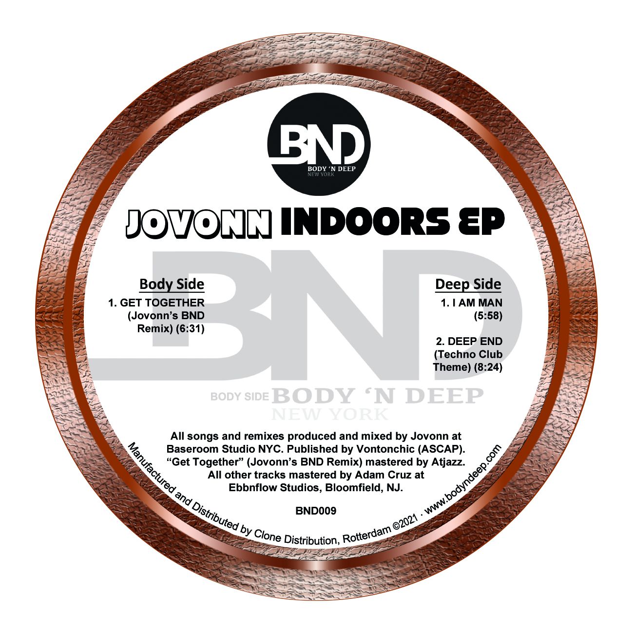 The label head honcho returns with three trademark new jersey house tracks. A new mix of 'Deep End Theme' features (Theme from Club Techno) and new track 'I Am Man', all demonstrating that timeless Jovonn production. With the label going from strength to strength and a new Jovonn artist album later in the year, it's looking to be an exciting year ahead for Jovonn and the Body N'Deep collective.