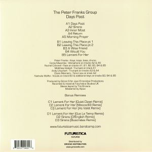 Deep jazz & hip hop meet on "DAYS PAST", a new LP from THE PETER FRANKS GROUP. Produced by SIMON S, "DAYS PAST" incorporates a lush, live vibe with hard drums, deep basslines, organic keys & standout solos alongside dusty samples. Remixes include stellar work from QUIET DAWN,BUSCRATES & MECCA:83.