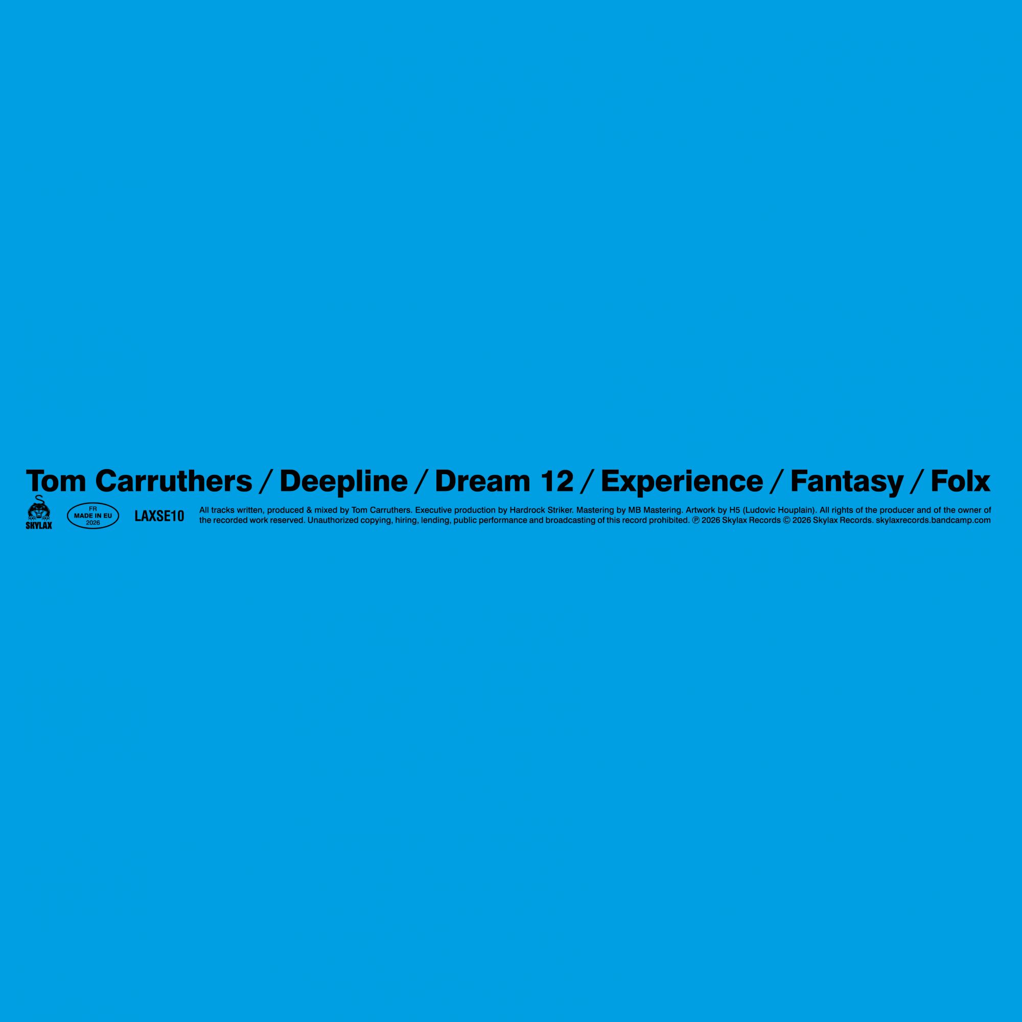 UK producer Tom Carruthers delivers another masterclass for Skylax, diving deeper into the DNA of house music with Deepline, a 5-track journey that connects the raw futurism of the late ’80s to the deep innovations of the early ’90s. Known for his MPC-driven grooves on L.I.E.S., Clone Jack For Daze and Craigie Knowes, Carruthers has become a true guardian of machine funk — always stripped down, always pure. The title track Deepline captures the very essence of house, hypnotic and driving, right at the crossroads of 80s machine funk and early 90s deepness, a timeless groove that feels like the missing link. Dream 12 unfolds as lush and atmospheric, with pads that instantly recall the golden era of early 90s deep house, a reverie made for afterhours and smoke-filled basements. Experience stands as a raw reminder of the four pillars of house — drum machines, bass, minimalism and repetition — metallic, stripped, relentless, pure underground. On the flip, Fantasy explodes with wild energy, channeling the raw spirit of Trax Records and Armando, dirty and direct, a weapon for uncompromising dancefloors. Finally, Folx closes the record with a cosmic edge, its tough jackin’ drums colliding with spacey synth touches to create a bridge between Chicago basements and interstellar dancefloors. Once again, the visual identity is entrusted to the iconic H5 studio (Daft Punk, YSL, Logorama), whose bold modernist artwork perfectly mirrors Carruthers’ stripped yet futuristic vision. Vinyl only. No digital. No compromise.