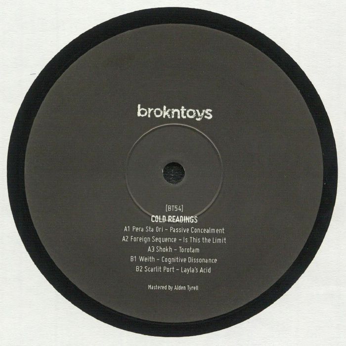 The Brokn Toys label rarely misses the mark, with its' multi-artist EPs always a solid source of high-grade electro and related futurist electronics sounds. Predictably, Cold Readings, their latest compilation style affair, is another winner. The EP begins with a chunk of ultra-deep and icy electronica from Pera Sta Ori ('Passive Concealment') and ends with a deliciously raucous fusion of military-grade acid squelch and skittish, heavily edited jungle breaks (Scarlit Port's excellent 'Layla's Acid'); in between you'll find sleazy and chugging electronic paranoia from Shokh, some off-kilter acid-electro from Foreign Sequence, and some moody industrial breaks courtesy of Weith.